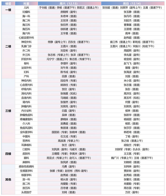 我院實行全年無假日門診,假日期間,門急診正常接診,為您提供“無差別、同質化”的服務。