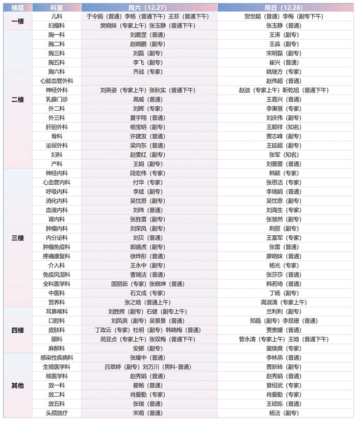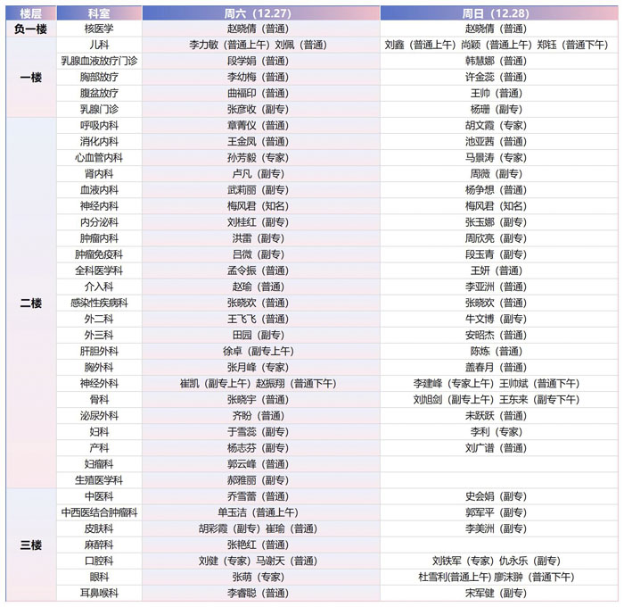 我院實行全年無假日門診,假日期間,門急診正常接診,為您提供“無差別、同質化”的服務。