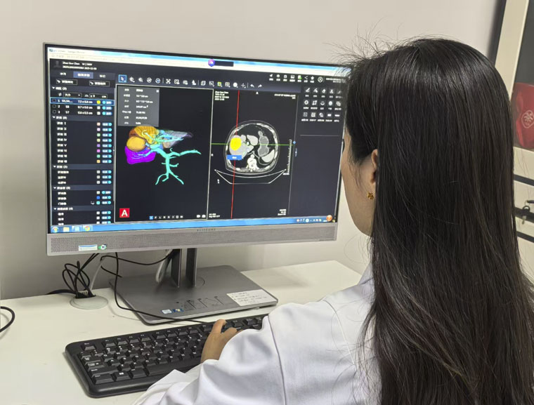近日,我院CT磁共振科協助肝膽外科,運用“人工智能手術規劃”系統,通過醫學影像三維重建,幫助一名身患膽總管腫物、膽管狹窄、肝損害、梗阻性黃疸等10余種疾病的71歲男性完成了膽總管惡性腫瘤切除手術。手術過程順利,患者術后無并發癥,恢復良好。截至目前,CT核磁共振科已為肝膽外科、胸外科等制定手術規劃近300例,成功助力臨床為多名罹患疑難復雜疾病患者精準實施手術,不僅挽救了生命,更有效延長生存期,顯著提升了術后生存質量。