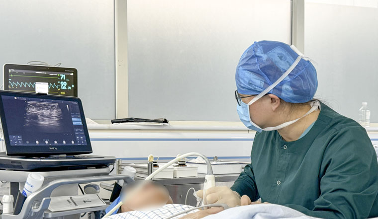 除常規日間手術外,科室在多個場景精準運用神經阻滯麻醉技術。該技術操作看似簡便,實則對臨床操作者的解剖定位、穿刺技巧及術中管理能力等要求很高。科室團隊憑借過硬技術,成功為多例因高齡、嚴重心腦血管合并癥、COPD而無法耐受傳統全身麻醉的患者,順利實施了保乳手術、前哨淋巴結活檢術及乳腺巨大腫物切除術等多種手術。此類患者若采用傳統氣管插管全身麻醉,手術風險極高,而神經阻滯技術的應用,不僅大幅降低麻醉相關并發癥發生率,更成功為這類原本難以耐受手術的患者,贏得了寶貴的治療契機。