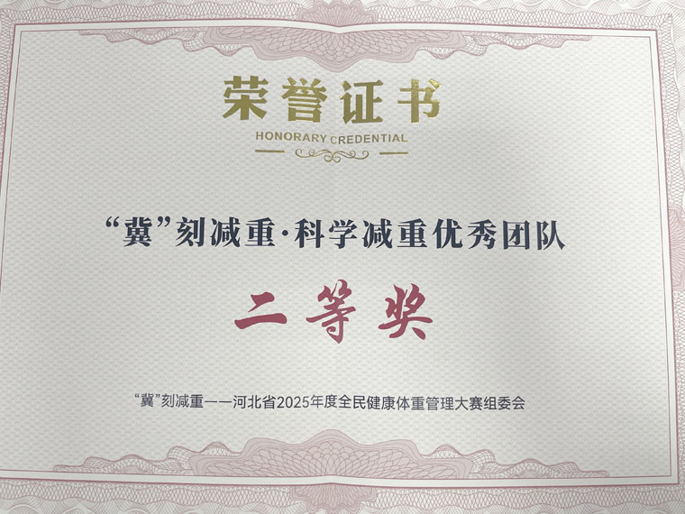 為貫徹落實《健康中國行動(2019-2030年)》《健康中國·河北行動(2020-2030)》《河北省“體重管理年”活動實施方案》相關要求,近日,由河北省衛生健康委員會主辦的“2025年度全省健康體重管理大賽”在石家莊召開。我院臨床營養科聯合中醫科組建的專家團隊憑借專業的干預方案與顯著的減重成效脫穎而出,榮獲大賽二等獎。參賽的減重選手同步獲評“減重之星”榮譽稱號。