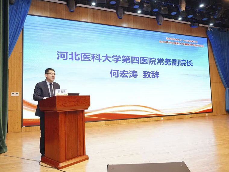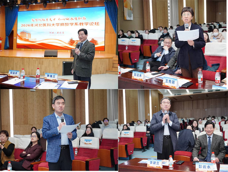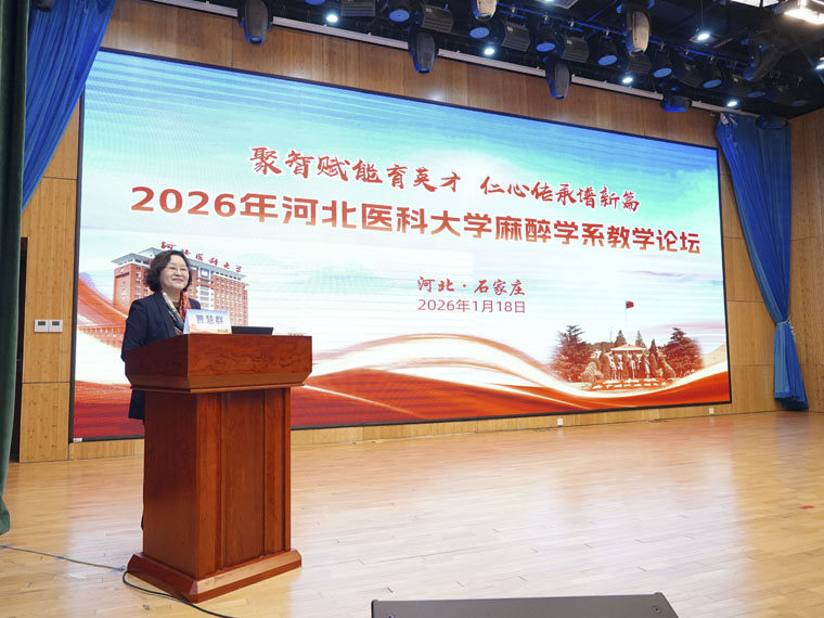 近日,河北醫科大學麻醉學系2026年教學論壇暨新年聯歡會在我院召開,會議以“聚智賦能育英才,仁心傳承譜新篇”為主題,聚焦麻醉學教育教學改革,旨在加強教學經驗交流,促進高質量人才培養。學校教務處副處長王恒草、我院常務副院長何宏濤出席會議并致辭。開幕式由學校麻醉學系主任、我院麻醉科賈慧群教授主持。我院教務處以及來自各教學醫院麻醉科主任、教學主任、教學干事及教師代表等180余人參加會議。