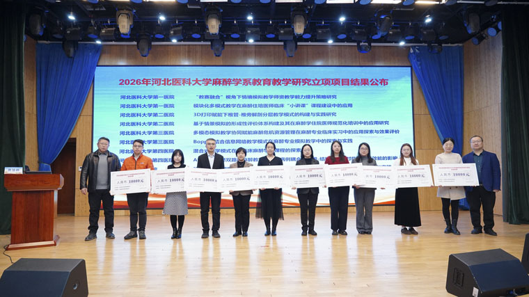 會上舉行了麻醉學系2026年度教育教學研究課題立項發布和教學成果獲獎教師表彰。本次課題申報積極踴躍,共有21項申報課題,內容涉及課程思政、模擬教學、臨床能力培養、人工智能賦能教學等,經專家評審,首批10項課題立項。隨后,會議對2025年度獲得教學成果獎的教師給予了表彰,其中,我院麻醉科雍芳芳老師團隊榮獲第二屆中國醫學教育題庫命題創新大賽三等獎、河北醫科大學第六屆教師教學創新大賽一等獎。