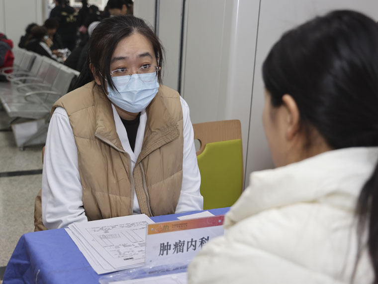 義診現場,專家團隊耐心接待每一名就診群眾,從癌癥的致病因素、日常預防要點,到早期癥狀識別、規范治療流程,再到術后康復護理、飲食作息指導,進行細致講解與專業指導,切實把健康知識和科學防治理念送到群眾身邊。針對部分年齡較大、行動不便的群眾,專家們主動上前接待,細致詢問病史、查看病歷及檢查報告,精準評估相關發病風險,為其制定專業篩查和預防方案。