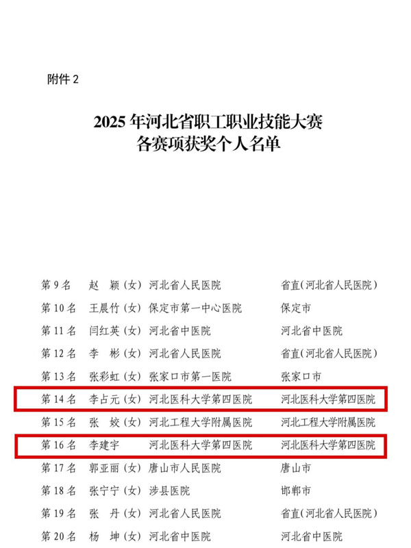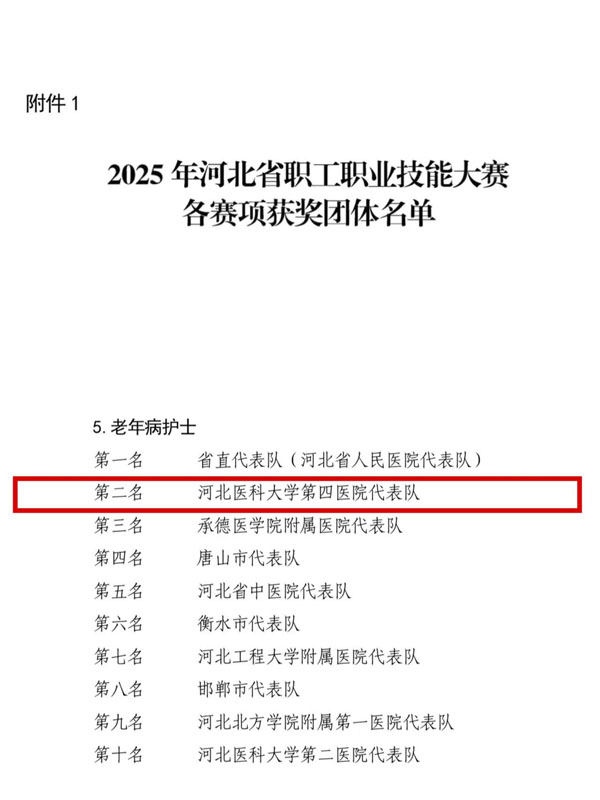 近日,由河北省總工會、河北省人力資源和社會保障廳、河北省衛生健康委員會聯合主辦的河北省老年醫療護理技能競賽落幕。由重癥醫學科高鵬、李建宇,消化內科李亞楠和東院急診科李占元組成的我院護理代表隊,經過理論考試、基礎操作、案例操作三個環節考核,在與全省63支代表隊近300名選手同臺競技中脫穎而出,獲得團體總分第二名。李占元、李建宇兩名選手憑借優異表現成功躋身個人成績前20名。