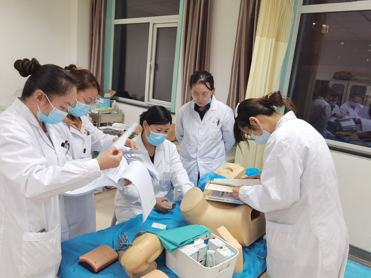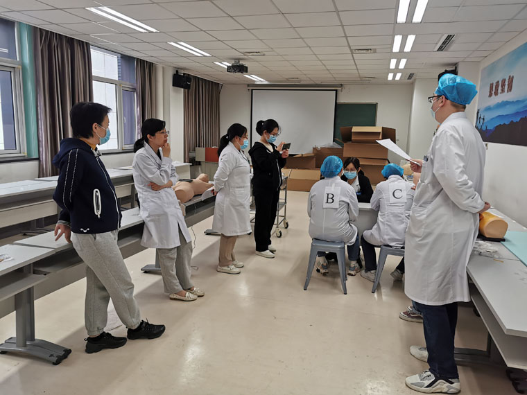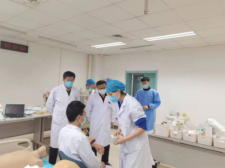 接到比賽通知后,醫院領導高度重視,多次召開專業基地協調會,組建技能訓練核心教師團隊,制定技能大賽工作方案。培訓期間,院領導多次巡視慰問并現場督導。教務處第一時間進行選手賽前動員,技能中心全力做好賽前保障工作。