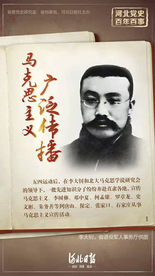 五四運動后,在李大釗和北大馬克思學說研究會的領導下,一批先進知識分子紛紛奔赴直隸各地,宣傳馬克思主義。李樹彝、鄧中夏、何孟雄、羅章龍、史文彬、朱務善等到唐山、保定、張家口、石家莊從事馬克思主義宣傳活動。