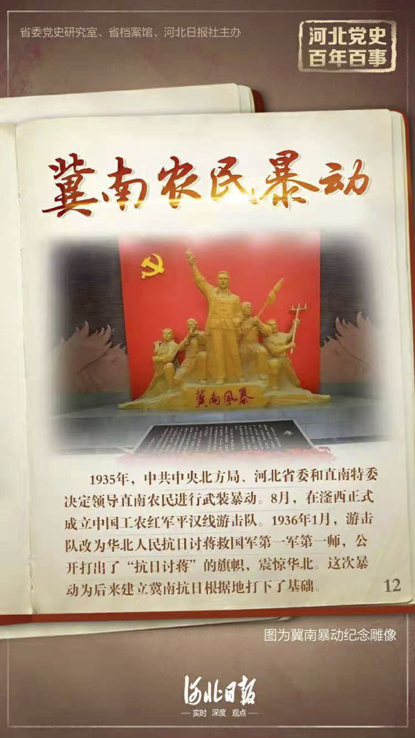 1935年,中共中央北方局、河北省委和直南特委決定領導直南農民進行武裝暴動。第一次武裝暴動因準備不足而“流產”。8月,在滏西正式成立中國工農紅軍平漢線游擊隊。游擊隊不斷襲擊警察、保安團和惡霸地主,并分糧吃大戶。1936年1月,游擊隊改為華北人民抗日討蔣救國軍第一軍第一師,劉子厚任師長。游擊隊公開打出了“抗日討蔣”的旗幟,震驚華北。在大批國民黨軍隊反撲下,隊伍遭到鎮壓和迫害,革命轉入低潮。這次暴動為后來建立冀南抗日根據地打下了基礎。