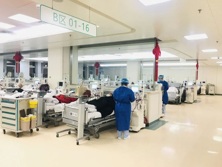 大量血透患者迫切的救命需求,許多醫務人員因封控而減員、且時刻面臨感染的風險,各醫院血透室都面臨巨大壓力……此刻,在我院黨委的堅強領導下,在疫情防控領導小組安排部署下,在職能部門和兄弟科室的支持幫助下,腎內科核心小組快速反應、多措并舉,采用最小作戰單元人員封閉輪替工作、最小代價保障透析室工作正常運轉,全力以赴保護血透患者生命健康。
