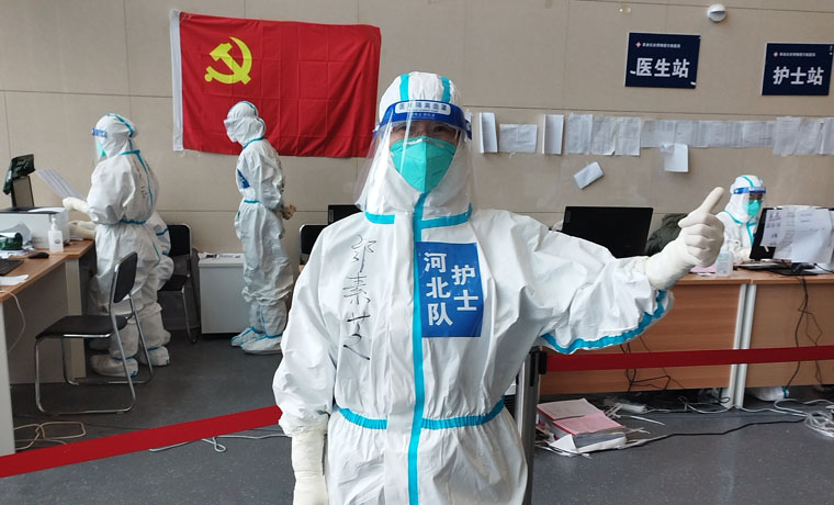 我院重癥醫學科東院區護士長郭素芝,擔任河北醫療隊臨時護理部副主任和院感防控崗位組長,“該崗位至關重要,是所有隊員院感防控的第一道防線,感控工作主要涉及人和物,其中做好人員培訓是重中之重”。在醫療隊統籌協調下,她第一時間組建了院感督導隊伍,把來自河北多家醫院的42名護理人員凝聚在一起,逐步開展分層培訓和考核,強化隊伍整體的防護用品穿脫技能,并制定督導人員職責和工作流程,開展線上培訓,嚴格落實相關規定,在這期間大家相互分享經驗,簡化流程,迅速掌握了工作要點。