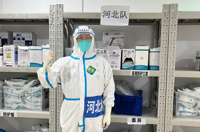 蘇旭明為我院超聲科醫師, “雖不在自己的熟知領域工作,但我堅決服從安排,會不斷學習院感知識,迅速掌握工作要點,不斷優化工作流程,最大程度的確保隊員防護到位”。