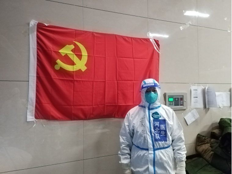 袁江偉醫生來自神經外科,是隊伍中唯一有抗疫一線經歷的人員,被選派參加了醫療隊院感防護培訓任務,作為老師參與了河北衛健委組織的河北醫療隊各醫院之間院感防護交叉考核任務。他不畏艱辛,充分發揮黨員先鋒模范作用,在醫療隊值班人員不足的情況下,減少休息間隔提前接班,主動承擔夜班值班頻次,與護理隊員配合,優化患者住院流程,最大限度減少感染風險,并在病區推廣,同時他在方艙建設、隊內組織等多方面做了很多工作。