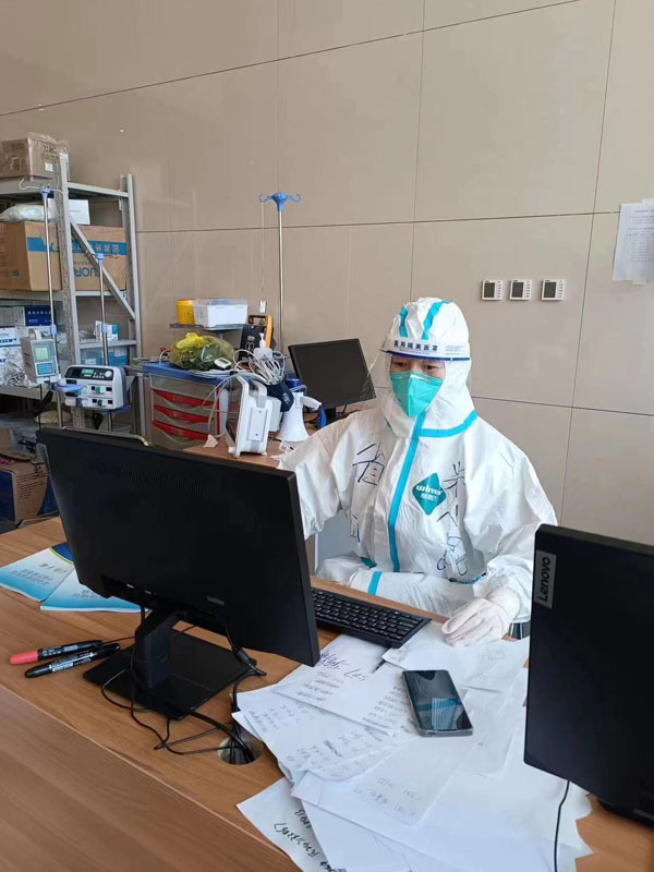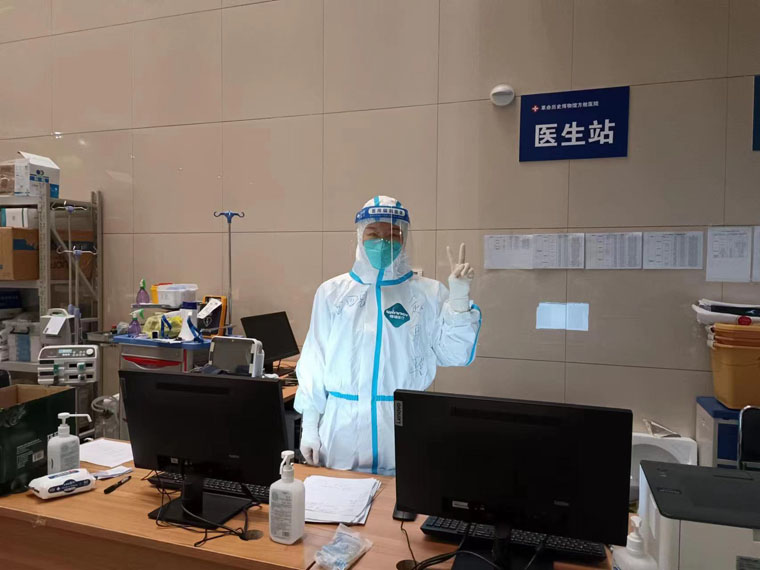 神經內科副主任米小昆是我院援內蒙古抗疫醫療隊臨時黨支部書記和醫療隊隊長,第一時間進艙熟悉病區環境及操作流程,及時向隊員們做進艙前宣教,積極應對突發事件,平穩把控整個病區工作順利進行。她以高度的責任感和大局意識參與制定了10余項方艙醫院標準制度流程,積極倡導人性化服務理念,對可能發生的風險環節進行預判,謹防不良事件的發生。作為醫療組組長,在完成繁重管理任務同時,每天還承擔著大量感染者的醫療會診工作。她為既往腦血管病等慢性病的感染者建立統計表并重點關注,幫助很多患者在病程早期得到就診和轉診,取得了良好的救治效果。面對人員變動、政策調整等突發情況,她積極與上級溝通,團結隊員、疏導壓力,始終以堅韌、果敢的作風沖鋒在抗疫第一線。