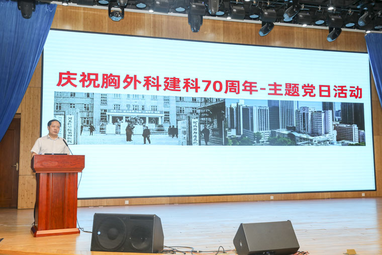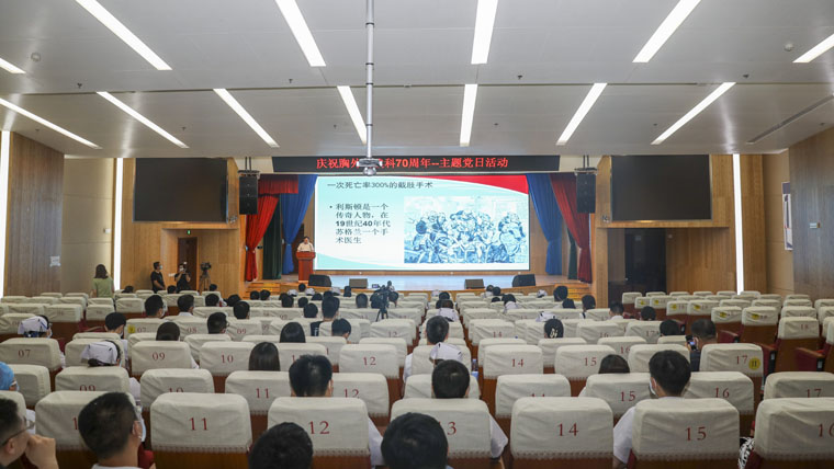 為慶祝我院胸外科建科70周年,增進中、青年醫護人員對世界胸外科史和我院胸外科發展歷史的認識,更好地了解胸外科技術的更新與發展,應廣大醫護人員要求,7月27日,第13黨支部書記劉俊峰、第14黨支部書記何明、第15黨支部書記姚繼方、第45黨支部書記田子強在本部新醫技病房樓報告廳組織舉辦了一場別開生面的主題黨日活動。田子強主任為胸心外科全體醫護人員、研究生、進修生以及社培人員等200余人講授了一堂內涵豐富的醫學歷史課——《胸外科學簡史》。活動由何明主任主持。