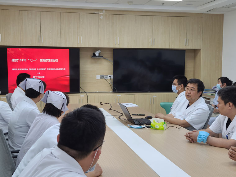 為慶祝建黨101周年,近日,第10黨支部開展主題黨日活動,支部書記趙瑞力以“重溫黨史——學習《實踐論》和《矛盾論》在醫學實踐中的指導作用”為題,為全體黨員和入黨積極分子上了一堂生動的主題黨課。