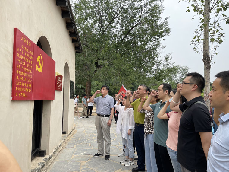 7月2日,第9黨支部開展“喜迎二十大永遠跟黨走”慶祝建黨101周年主題黨日活動,支部書記范立僑帶領黨員及入黨積極分子來到革命圣地西柏坡,瞻仰舊址,重溫老一輩革命家的革命信仰。在七屆二中全會舊址,范立僑帶領大家重溫了入黨誓詞。