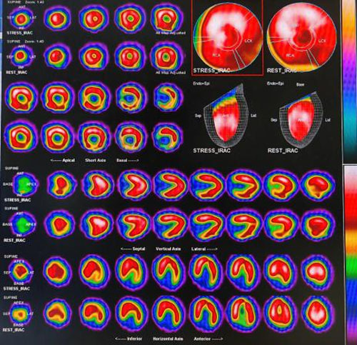 瑞加諾生負荷心肌灌注顯像是指靜脈注射藥物瑞加諾生后再進行心肌血流灌注顯像檢查。瑞加諾生進入體內后,可使冠狀動脈擴張,病變冠脈和正常冠脈擴張程度不同,從而使正常心肌與缺血心肌的血流量產生差異,從而判斷心肌缺血,以及心肌缺血范圍和程度等。