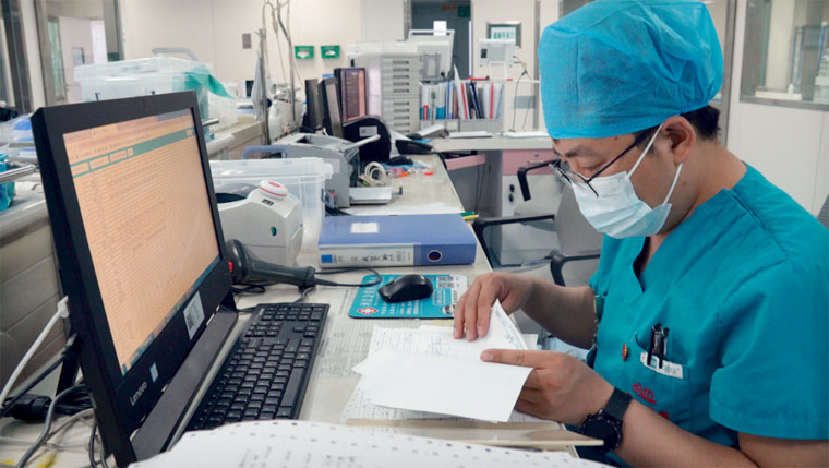 申康康是科里第一個掌握ECMO技術的護理人員。2015年,一位62歲主動脈夾層術后的患者被送到了ICU,需要上ECMO。心臟按壓、協助醫生上機器、觀察數據、迅速執行反饋……這場與時間賽跑的搶救,沒有給申康康思考的時間,更多的是靠平時的積累來做出最直接反應。