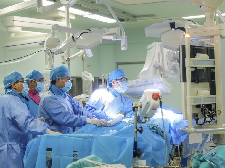隨著醫學的快速發展,外科手術的微創化是必然趨勢,創傷小、痛苦小、恢復快,可以達到傳統手術同樣的效果。在我院黨委的正確領導下,近年來,經院內多學科團結協作,心外科手術微創化不斷走向成熟,目前胸腔鏡下心臟瓣膜置換、小切口冠脈搭橋、微創冠脈搭橋聯合PCI治療冠心病、小切口下全主動脈弓替換等微創手術均已成為科室主流手術,經導管主動脈瓣植入術(TAVR)的開展必將助力手術微創化的進一步發展,使更多患者受益。