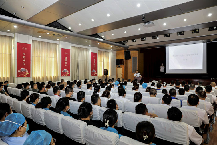 馬景濤副院長結合后勤工作實際,緊緊圍繞習近平新時代中國特色社會主義思想,帶領大家認真學習了黨的二十大報告精神。他對報告中15個部分進行分解和詮釋,從不同角度深入淺出地講述了國家支撐、科教興國戰略、文化自信、人與自然和諧共生、中國式現代化、全面從嚴治黨等內容,并結合自身實際,從求知求學、從醫經歷等分享自己的初心使命。