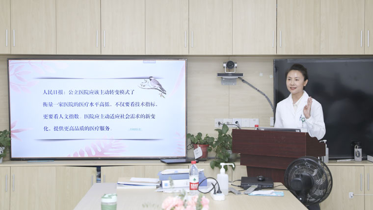 “有時去治愈,常常去幫助,總是去安慰”, 徐小莉老師以特魯多博士的銘言作為開場白,全面詮釋了禮儀和溝通的重要性。通過現場模擬、巧設場景、機智問答等多種形式,徐小莉老師重現就醫問診等醫患溝通情節,講授了工作生活中交往禮儀的細節和技巧。“醫護人員的說話方式、溝通態度對患者及家屬會產生直接影響,甚至會影響患者的身心健康、治療效果,影響科室及醫院的形象”,很多年輕的醫務工作者表達了學習感受。
