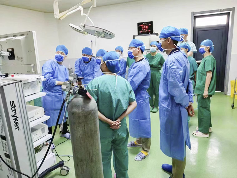 在學術環節,我院專家結合當地需求,就“舒適化診療、超聲下神經阻滯、手術隔離技術、全麻胃管留置改進”進行講座,并在內鏡科、手術室進行無痛胃腸鏡、超聲引導下可視化麻醉、腔鏡手術護理配合等床旁實操教學,手把手傳遞經驗。