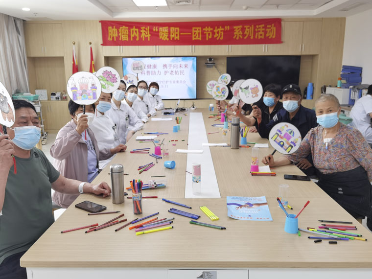 近年來,護理團隊的人文關懷已成為腫瘤內科診治特色之一,貫穿于癌癥治療的全過程,始終堅持 “從臨床中來,到臨床中去”,為各階段的癌癥病人提供緩解癥狀、減輕痛苦的手段。2013年,團隊探索適合中國腫瘤患者的音樂治療模型,充分發揮腫瘤音樂干預治療癌癥的優勢,以藝術的方式向腫瘤患者展現“中國式微笑”,多角度提升患者的健康水平,幫助大家在抗癌道路上得到更多的“溫暖陪伴”和“人文關懷”。