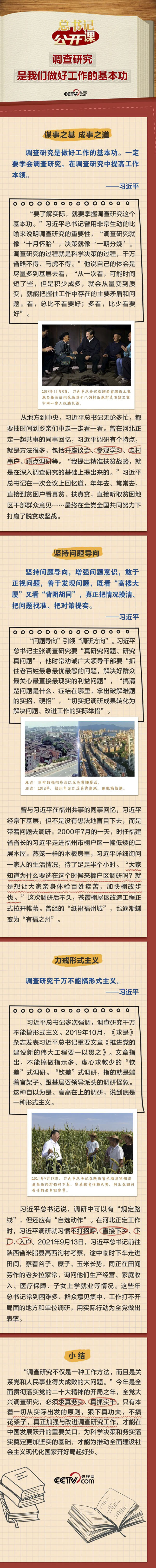 “調查研究是謀事之基、成事之道,沒有調查就沒有發言權,沒有調查就沒有決策權。調查研究是我們做好工作的基本功。”習近平總書記非常重視調查研究,并一以貫之身體力行、率先垂范,推動全黨大興調查研究之風。本期《總書記“公開課”》聚焦總書記關于調查研究的所思所言所行,讓我們一起學習領會。