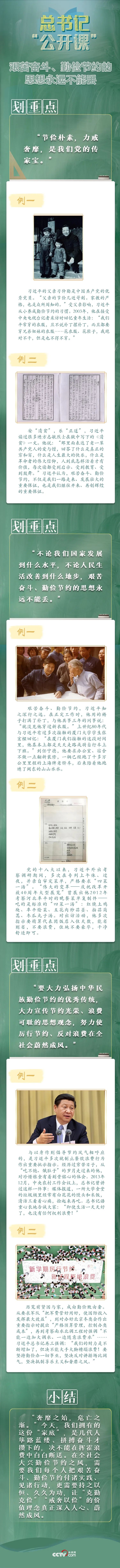 新的征程需要每一個中華兒女鼓足干勁。“節儉樸素,力戒奢靡,是我們黨的傳家寶。”習近平總書記一直提倡“厲行節約、反對浪費”的社會風尚,并率先垂范、以身作則。本期總書記“公開課”讓我們與總書記一起,把“艱苦奮斗、勤儉節約”深植于心并付諸實踐。