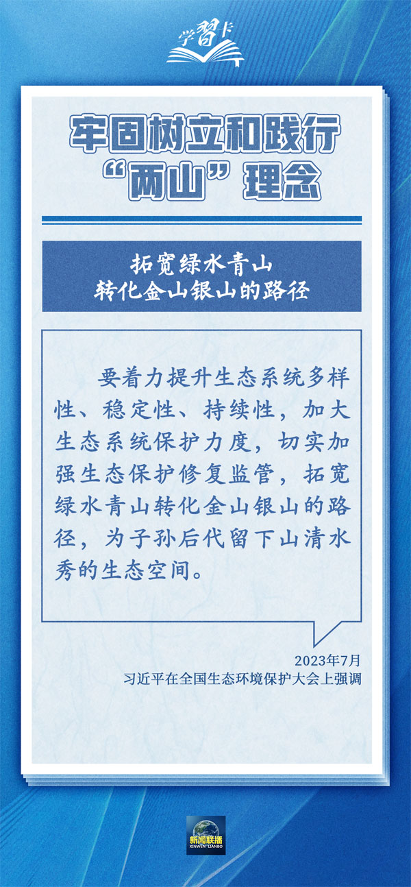黨的十八大以來,習近平總書記多次強調和闡述“綠水青山就是金山銀山”的理念,指明了實現發展和保護協同共生的新路徑。這一理念有哪些深刻內涵,如何踐行?一起學習↓