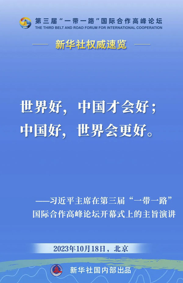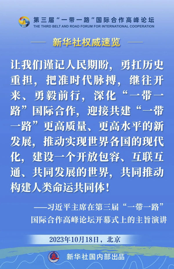 10月18日,國家主席習近平在第三屆“一帶一路”國際合作高峰論壇開幕式上發表主旨演講。一起來看金句。