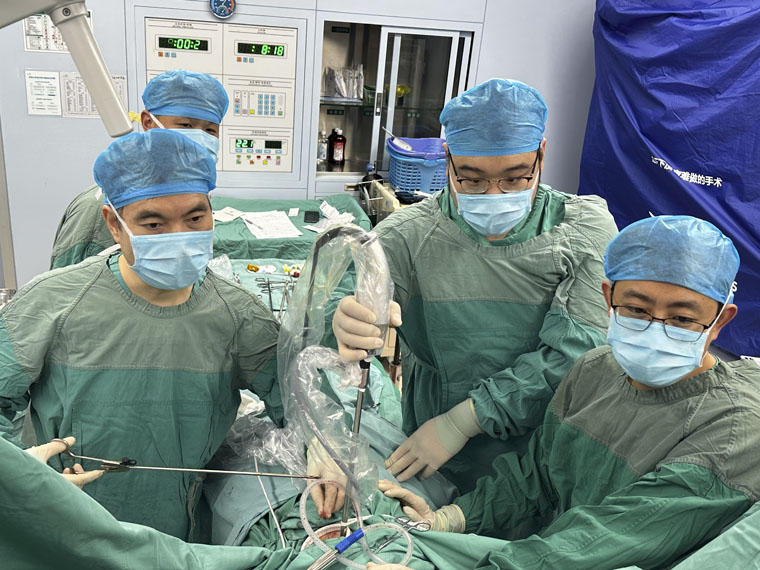近日,一臺胃底腫物的90歲高齡患者手術由趙群副院長主刀,僅耗時1小時20分鐘,成功完成機器人下保留賁門功能的胃底腫物及部分胃壁切除術。